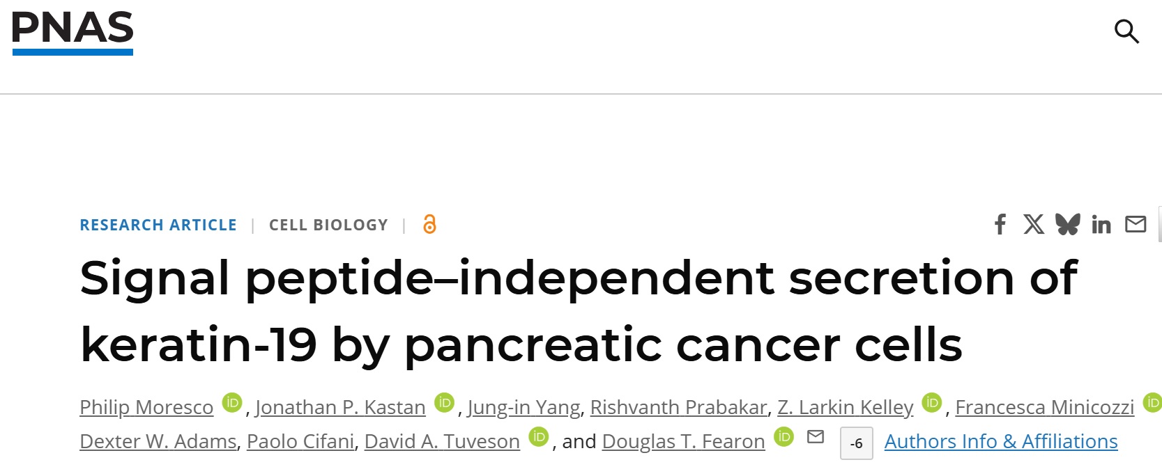Phil’s work on “Signal peptide-independent secretion of keratin-19 by pancreatic cancer cells” is published on PNAS. Congrats!
